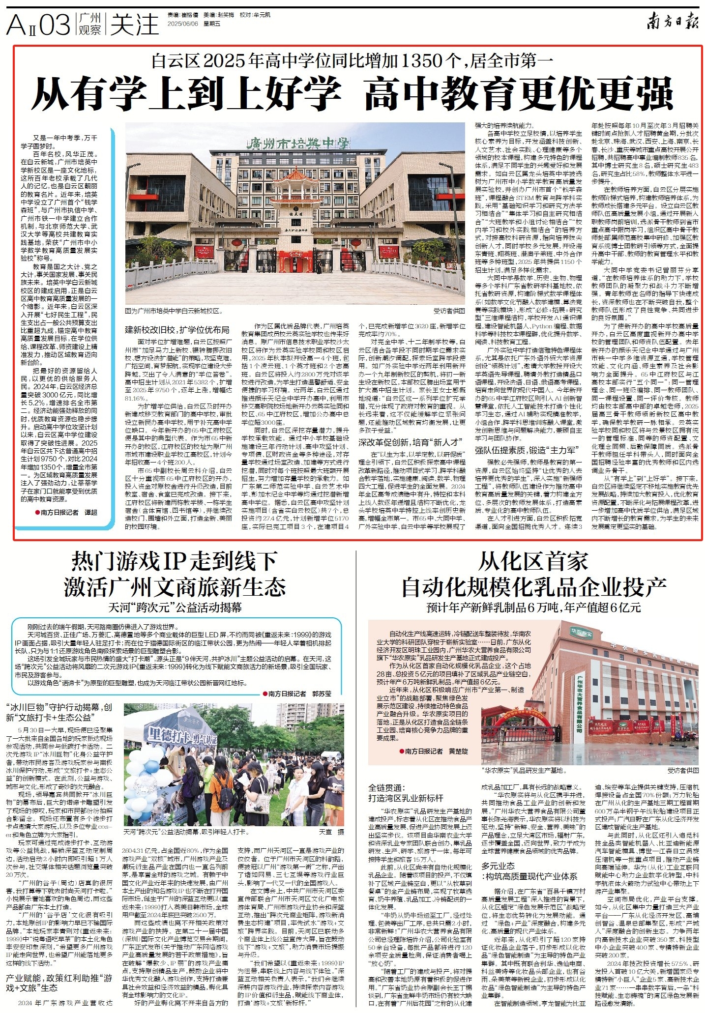从“有学上”到“上好学”。接下来,白云区将继续坚定不移地实施教育优先发展战略,持续加大教育投入,优化教育资源配置,不断深化与拓展课程改革,进一步增加高中优质学位供给,满足区域内不断增长的教育需求,为学生的未来发展奠定更坚实的基础。